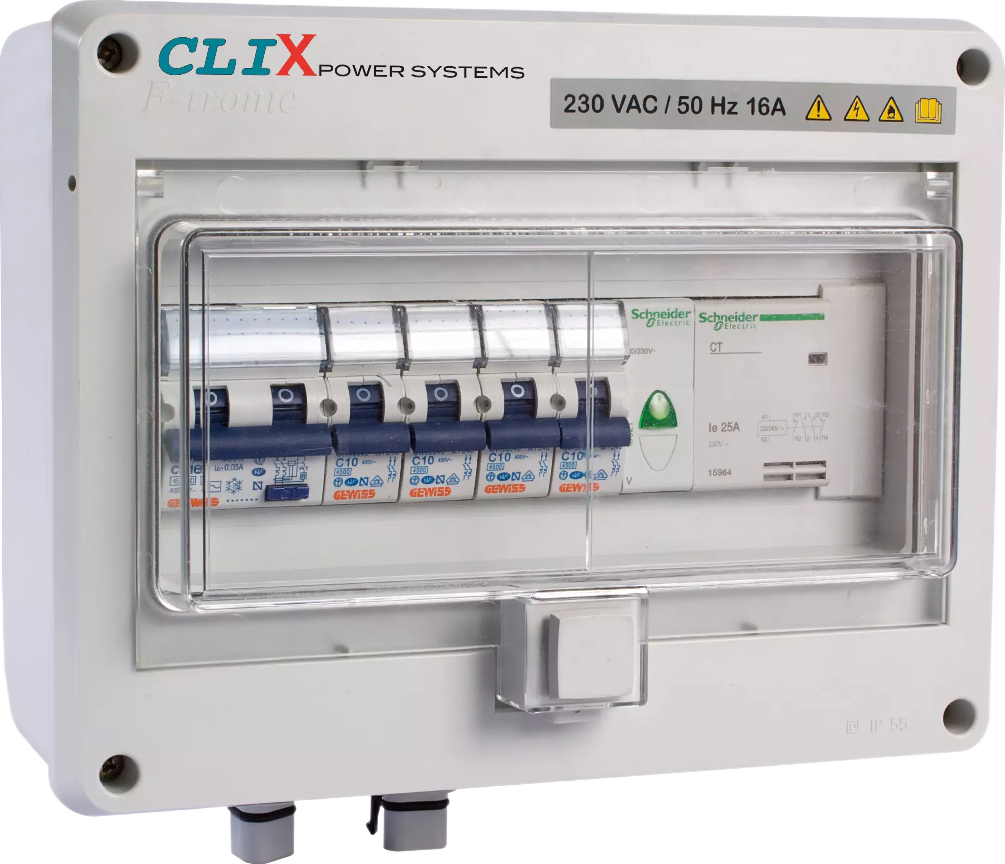 CLIX Maxi -maasähkökeskus, 2 x RCD ja automaattinen syötönvaihto invertterille
