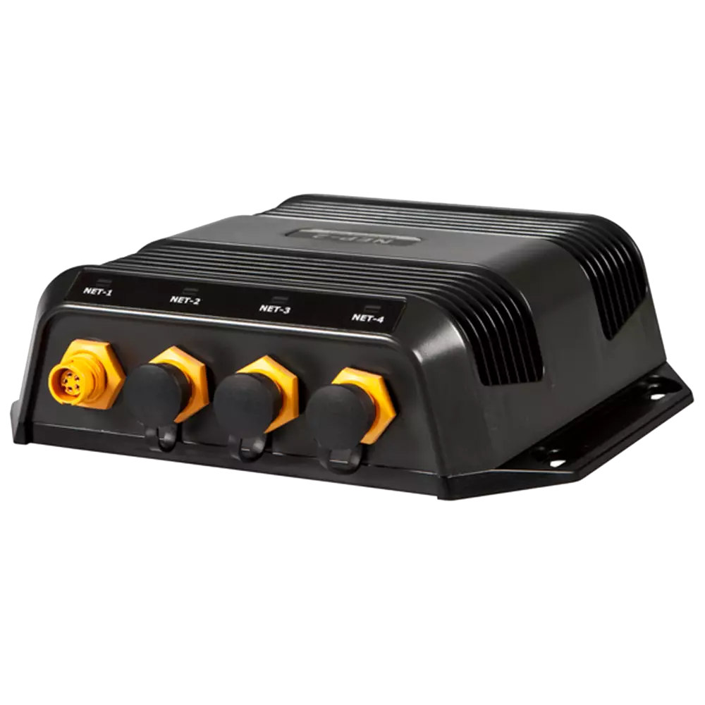 NEP-2 Verkon Laajennusportti on suunniteltu laajentamaan veneesi elektroniikkajärjestelmää. Tämä laajennusportti tarjoaa viisi Ethernet-porttia, joiden avulla voit yhdistää useita näyttöjä ja lisälaitteita, kuten kaikuluotainmoduuleja ja tutkajärjestelmiä.