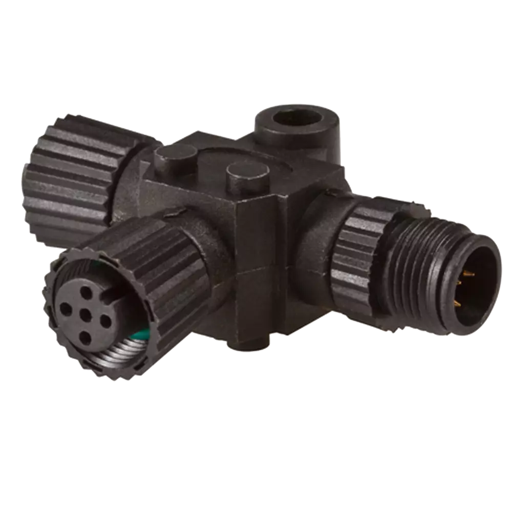 NMEA 2000® Micro-C T-liitin mahdollistaa yhden lisälaitteen kytkemisen olemassa olevaan N2K-runkoon. Liitin asennetaan väylän runkokaapeliin ja tarjoaa standardin mukaisen Micro-C-portin antureille, näytöille tai muille NMEA 2000 -laitteille.
