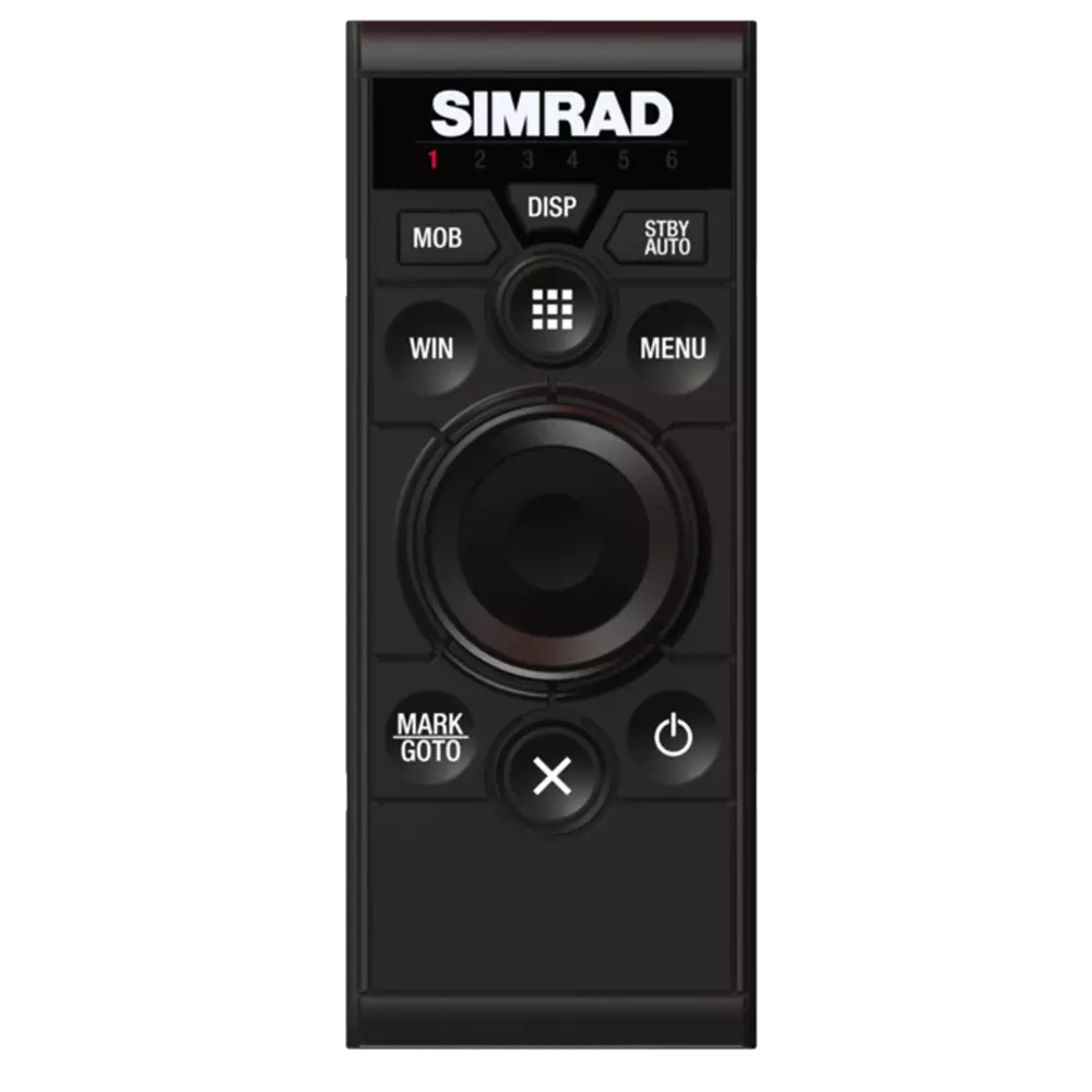 OP50 Remote - Portrait on Simrad-järjestelmien ohjainmoduuli, joka mahdollistaa jopa kuuden verkotetun monitoiminäytön hallinnan yhden NMEA 2000® -liitännän kautta. LED-ilmaisimet näyttävät selkeästi, mikä näyttö on aktiivinen, ja erillinen valintapainike nopeuttaa näyttöjen välillä vaihtamista.
