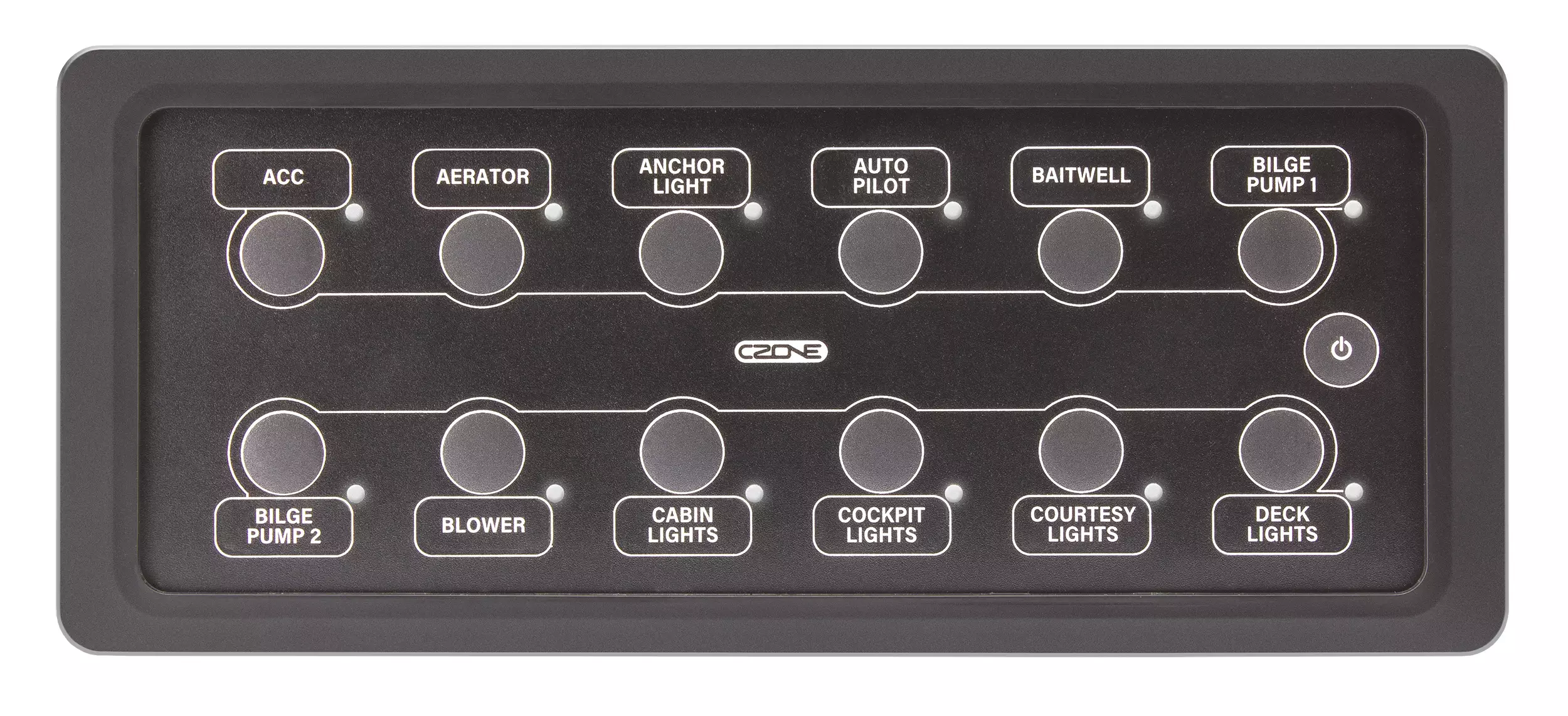 CZone Waterproof Keypad -sarja tarjoaa älykkään, kestävän ja tyylikkään ratkaisun veneiden, matkailuautojen ja erikoisajoneuvojen sähköjärjestelmien ohjaukseen. Näppäimistöt on suunniteltu kestämään vaativia olosuhteita – ne ovat IPX7-luokiteltuja, mikä tarkoittaa täyttä vedenpitävyyttä. Jokainen näppäin on varustettu RGB-taustavalolla, joka on himmennettävissä ja tarjoaa visuaalista palautetta järjestelmän tilasta, mukaan lukien sulakevikojen ilmaisu.