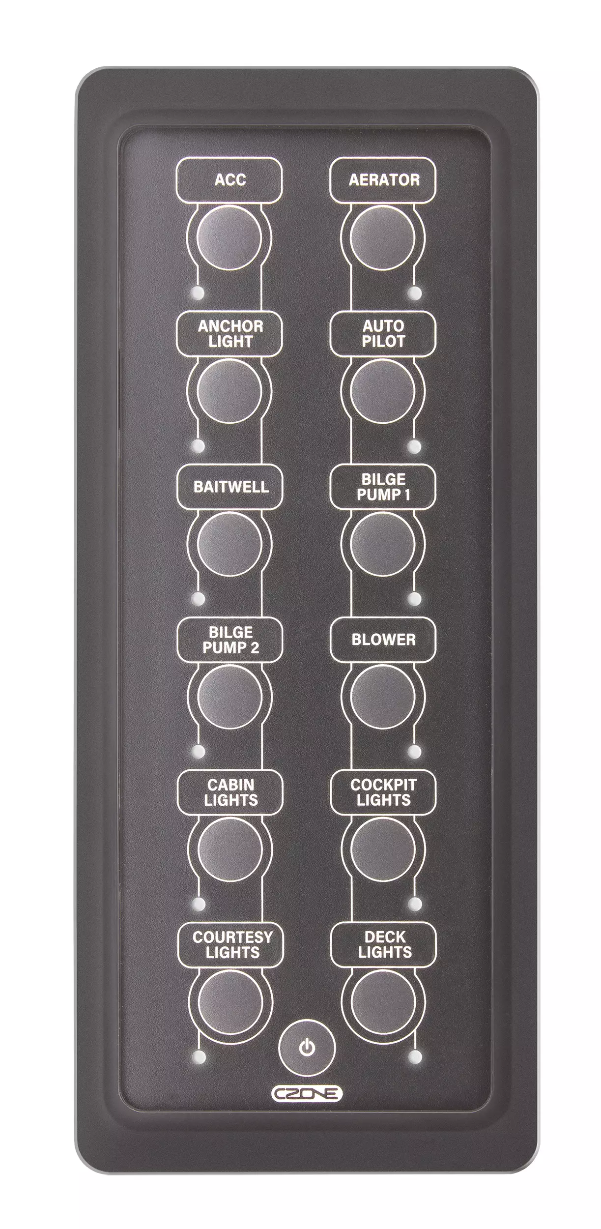 CZone Waterproof Keypad -sarja tarjoaa älykkään, kestävän ja tyylikkään ratkaisun veneiden, matkailuautojen ja erikoisajoneuvojen sähköjärjestelmien ohjaukseen. Näppäimistöt on suunniteltu kestämään vaativia olosuhteita – ne ovat IPX7-luokiteltuja, mikä tarkoittaa täyttä vedenpitävyyttä. Jokainen näppäin on varustettu RGB-taustavalolla, joka on himmennettävissä ja tarjoaa visuaalista palautetta järjestelmän tilasta, mukaan lukien sulakevikojen ilmaisu.