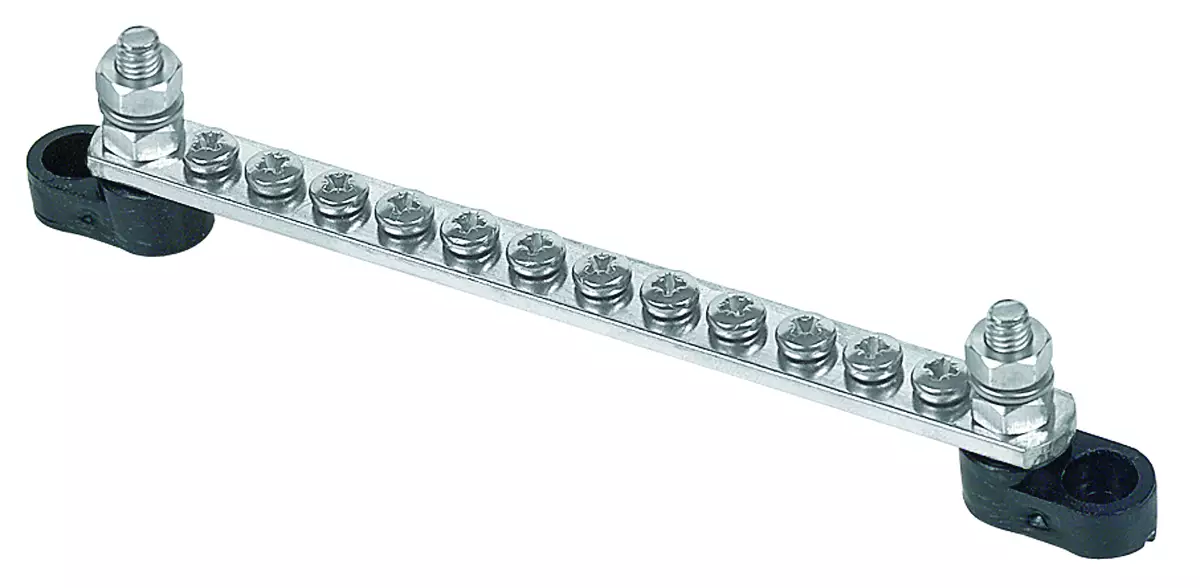 BEP Bus Bar Single 12x 4mm Screw Terminal 2x 6mm Input Stud 100A No Covers (Bulk)