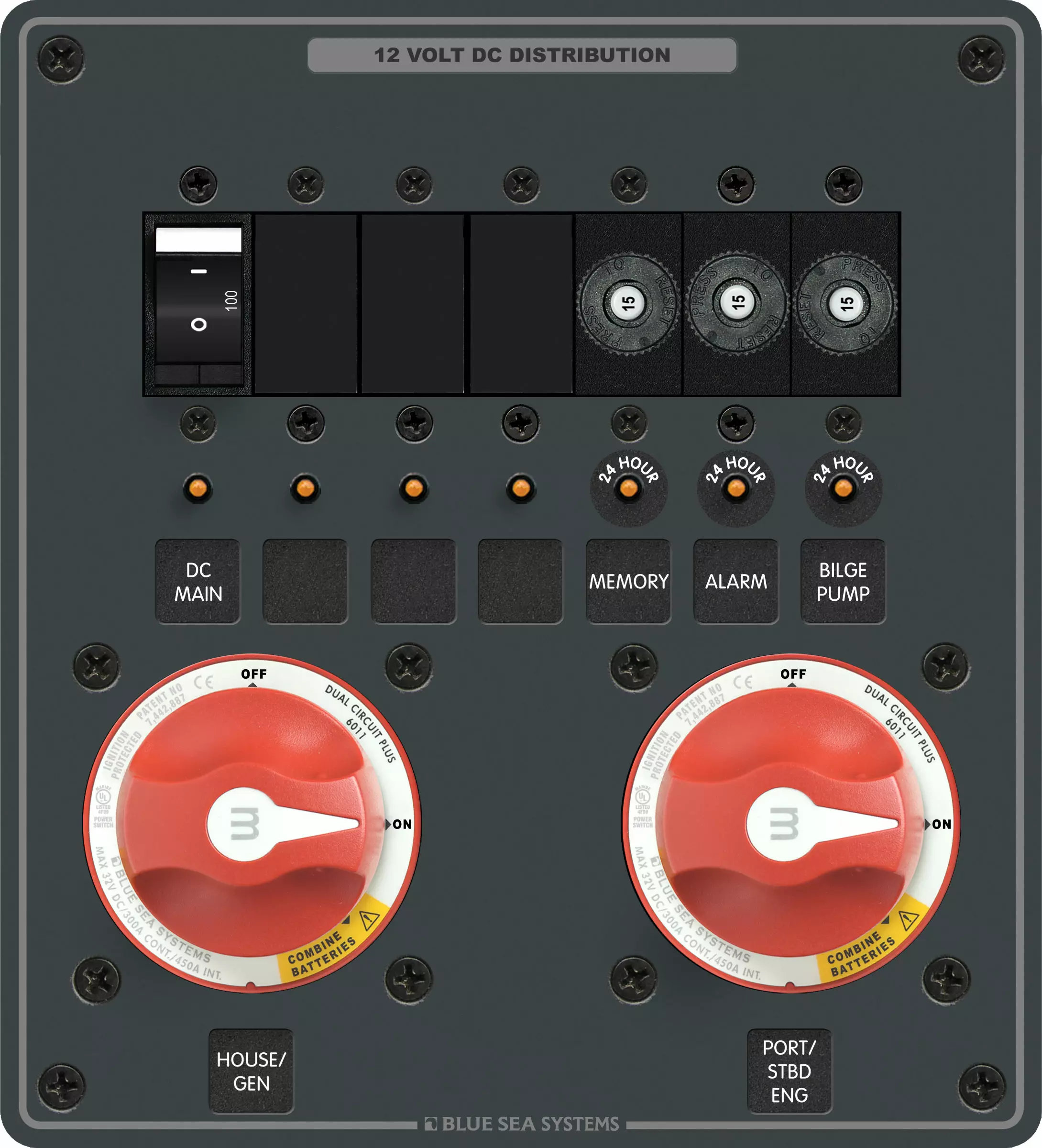 Paneeli sisältää kaksi m-Series Mini Dual Circuit Plus™ -kytkintä, kolme 15 A push button -katkaisijaa ja yhden 100 A C-Series katkaisijan. Kompakti rakenne ja selkeä käyttölogiikka tekevät asennuksesta ja käytöstä vaivatonta. Paneeli täyttää ABYC- ja ISO-standardit ja on suunniteltu kestämään meriolosuhteet.